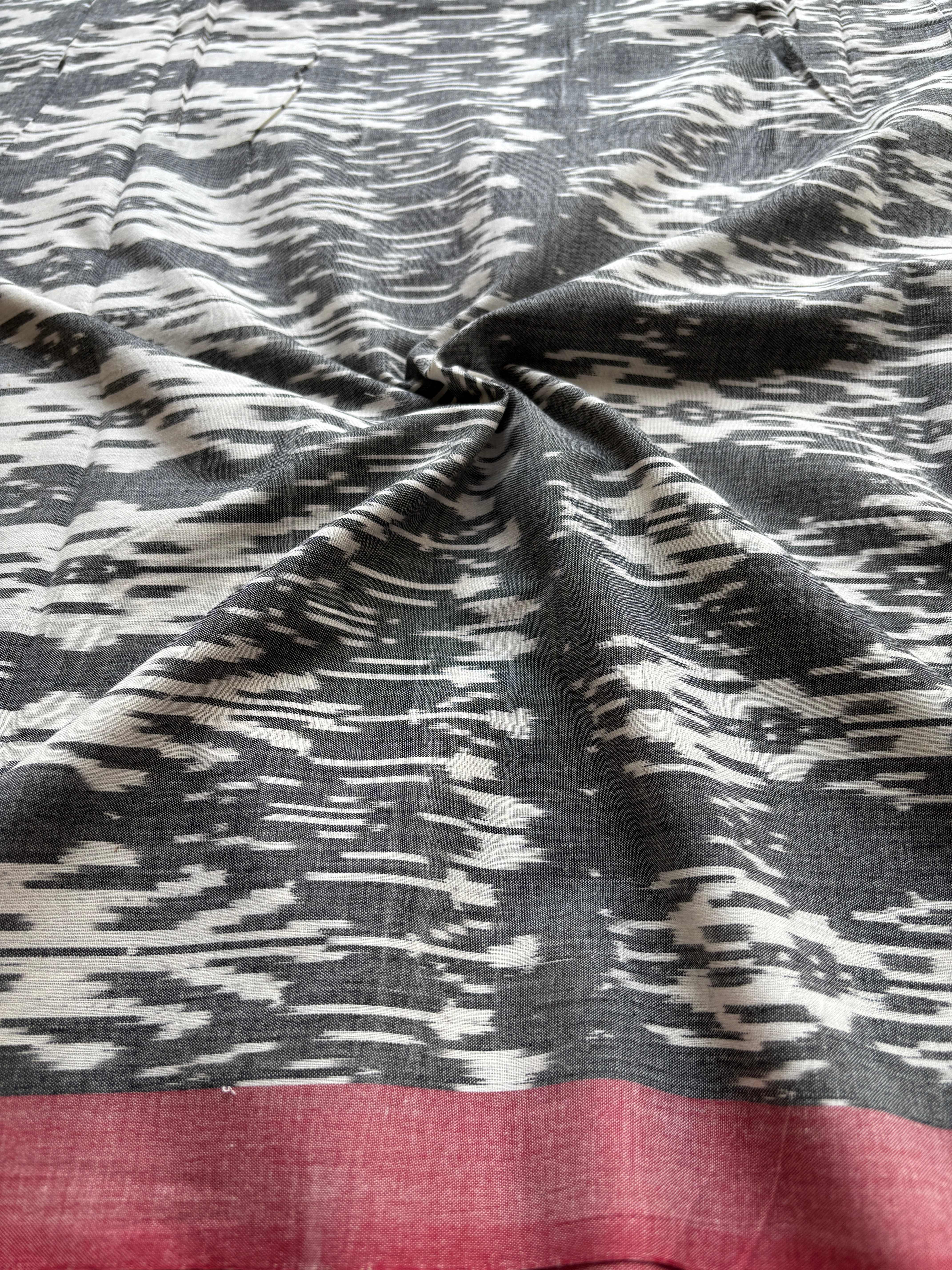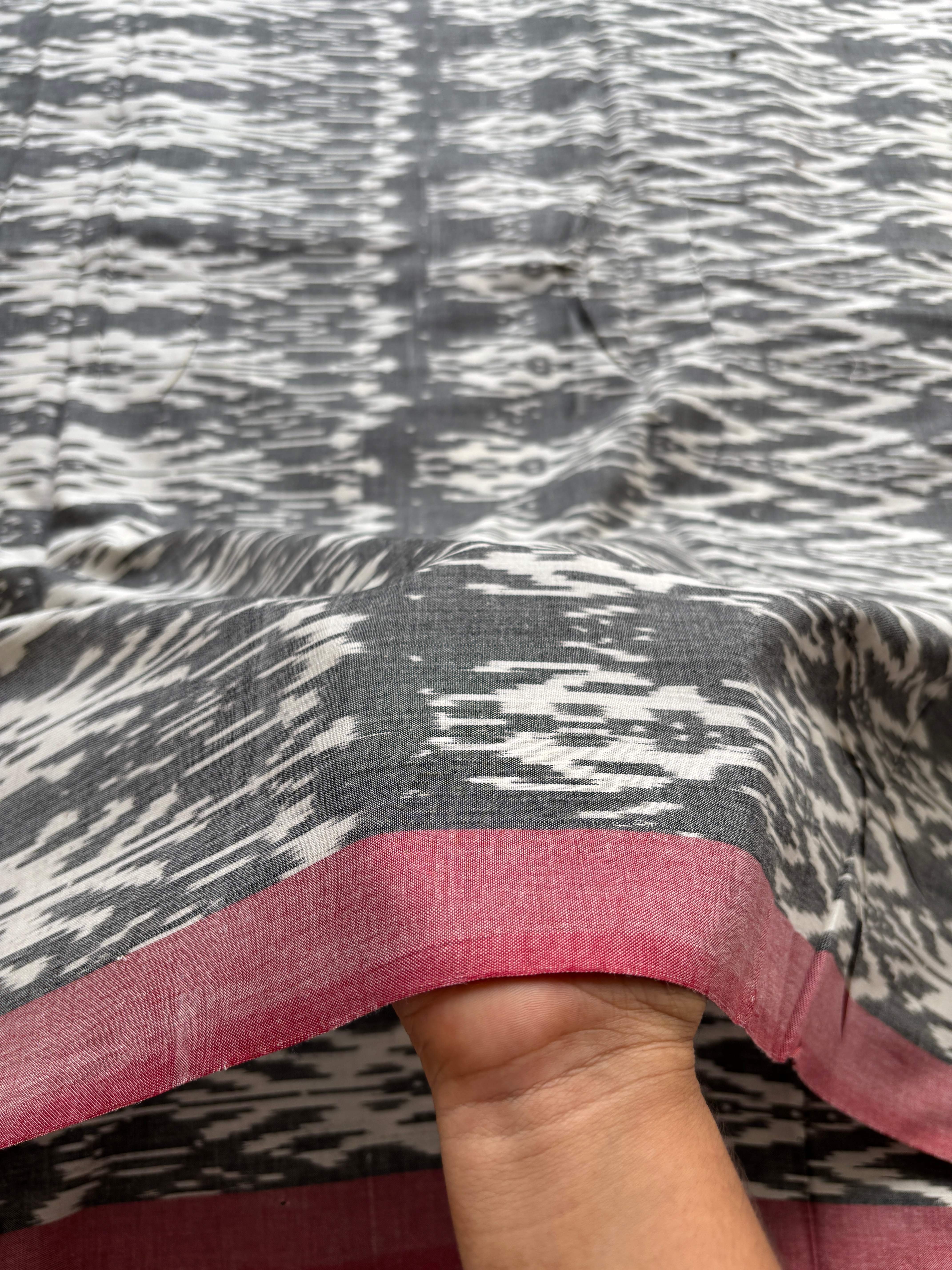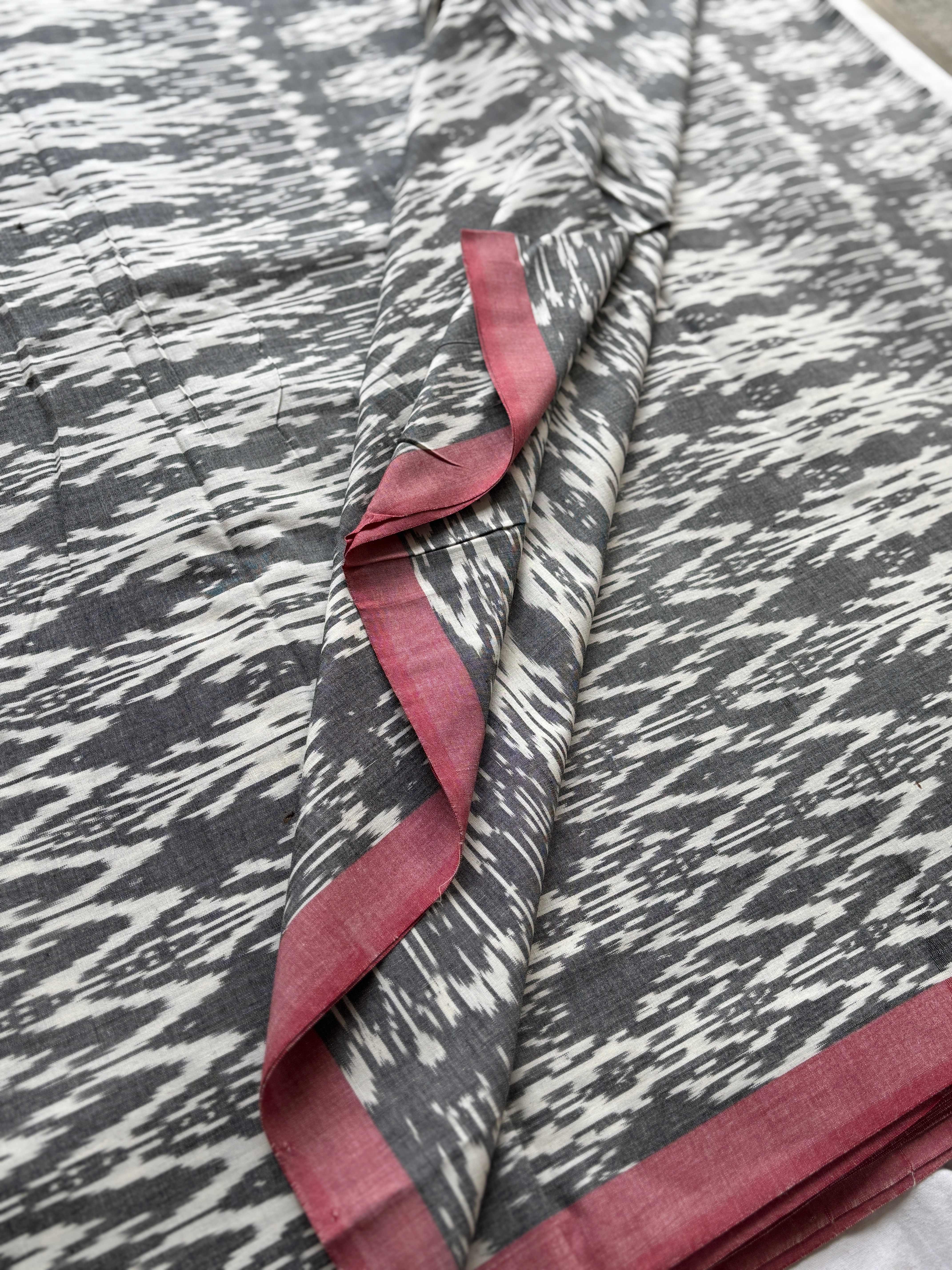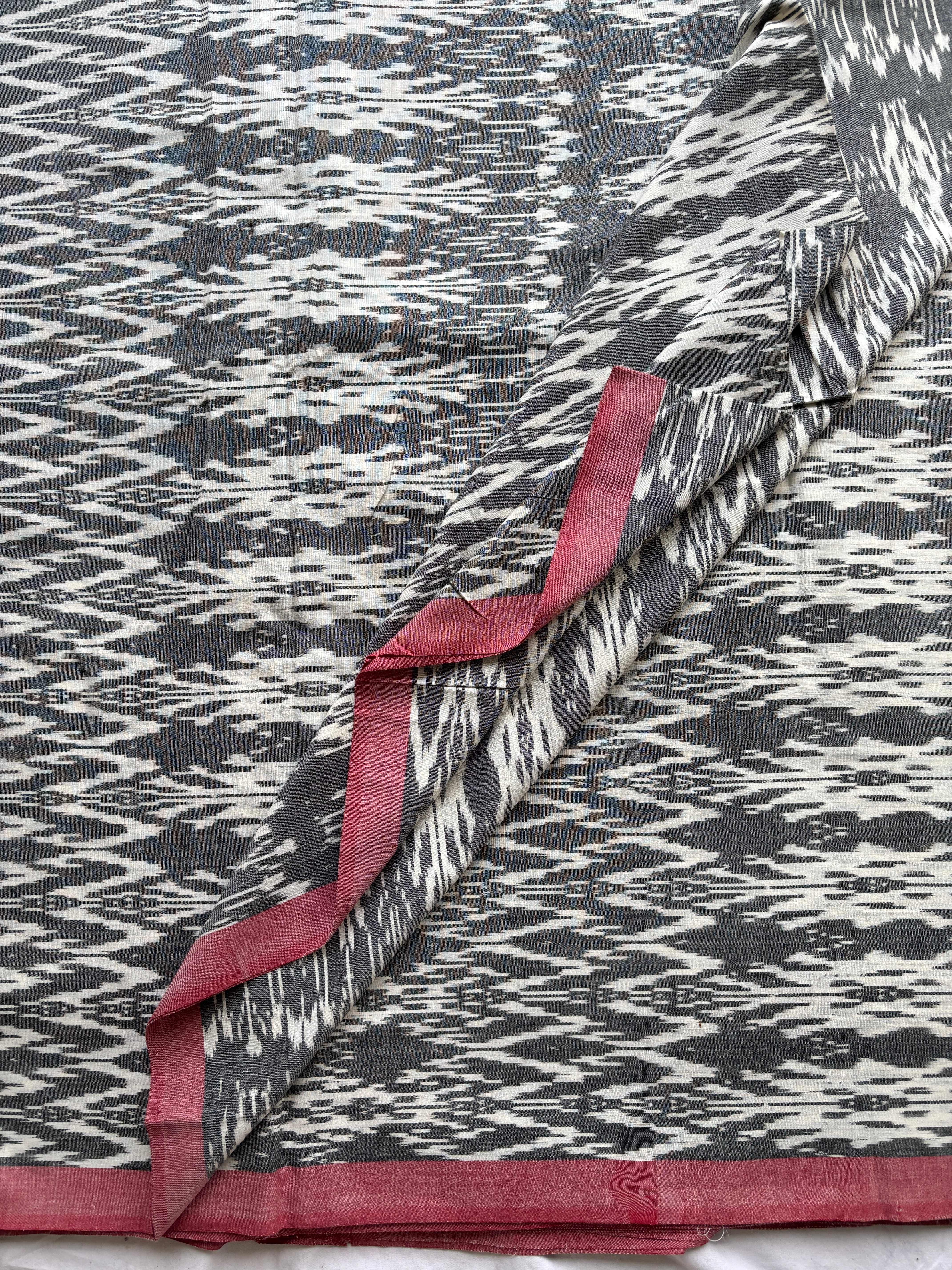 Elevate your ethnic and fusion wardrobe with this elegant Indodesign Grey Ikat Fabric with Peach Border, crafted from fine-quality cotton. Designed for those who appreciate subtle sophistication, this fabric beautifully combines a classic grey Ikat pattern with a soft peach border for a refined and graceful finish.Woven using traditional Ikat techniques, the fabric showcases intricate patterns that reflect timeless craftsmanship. The premium cotton material is lightweight, breathable, and soft to the touch, ensuring all-day comfort while maintaining a polished look.The contrast peach border adds a delicate pop of colour, making it perfect for creating standout outfits with minimal effort.